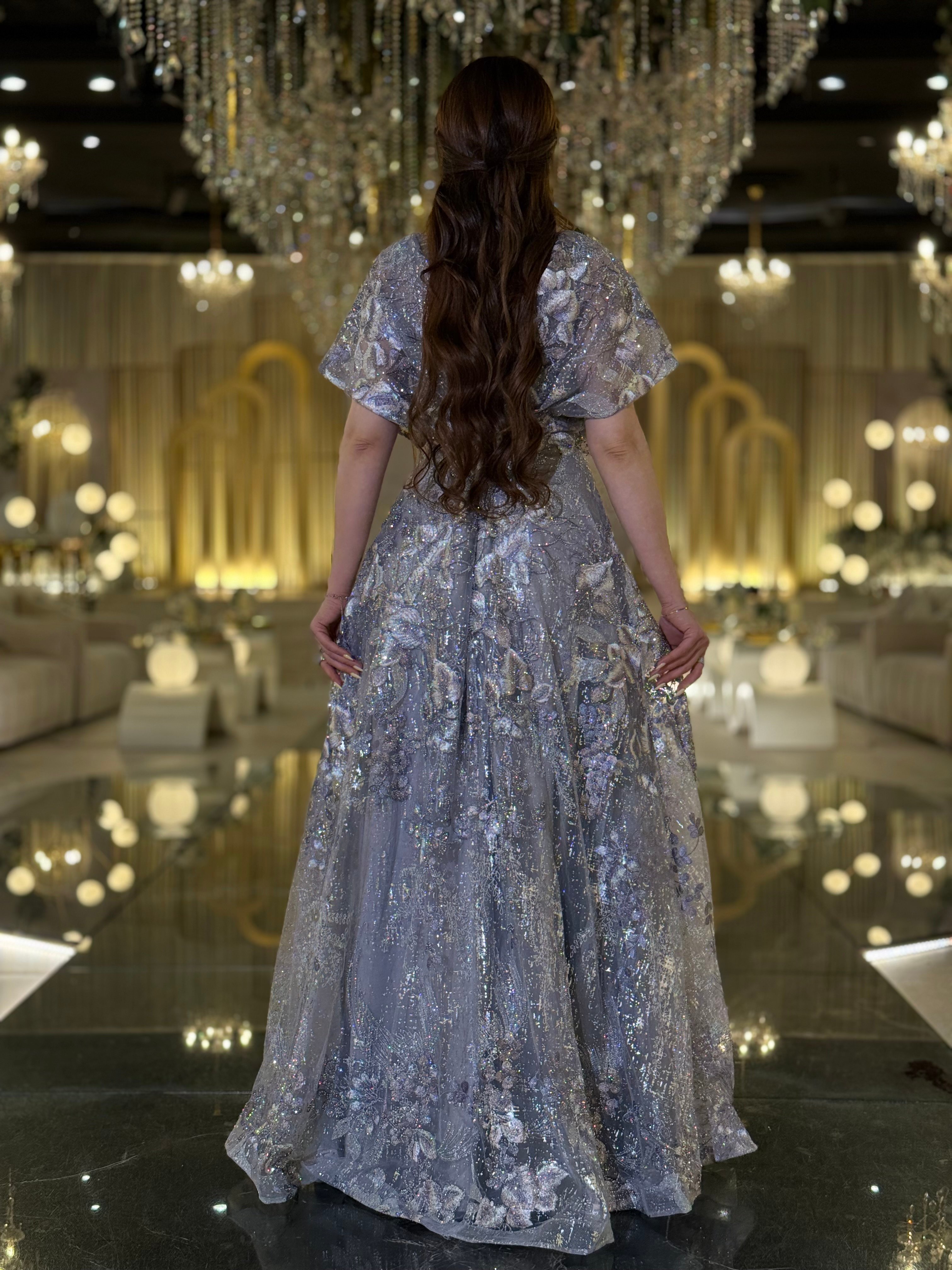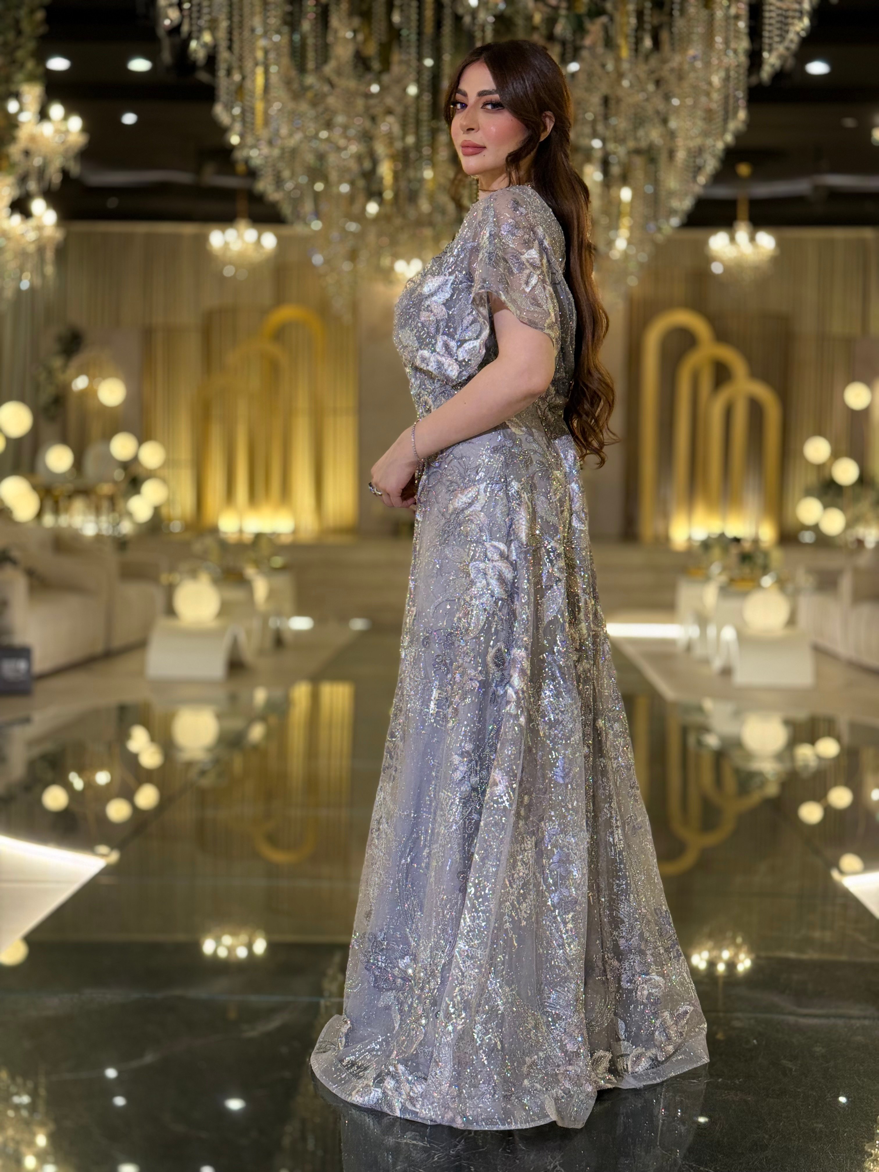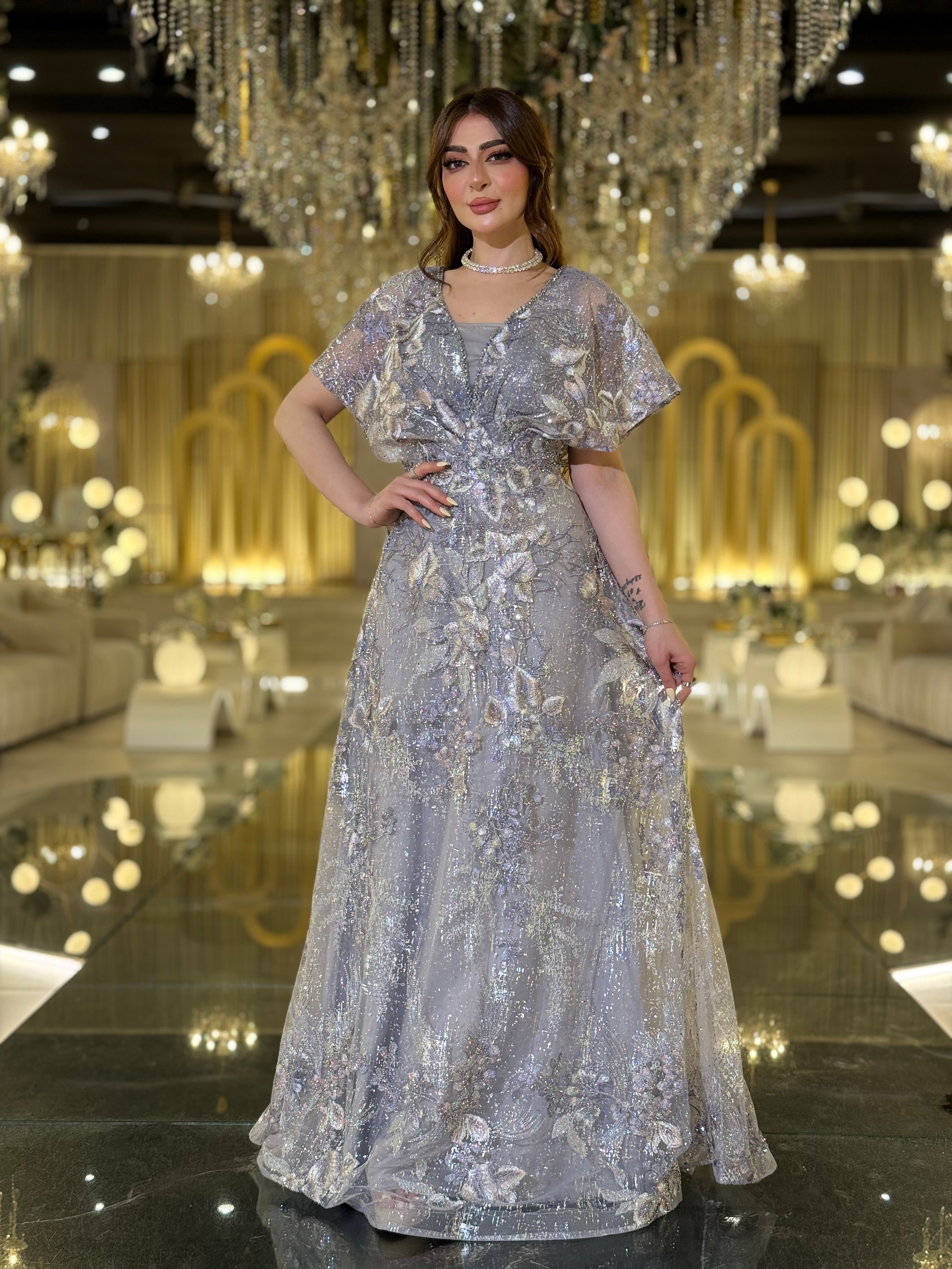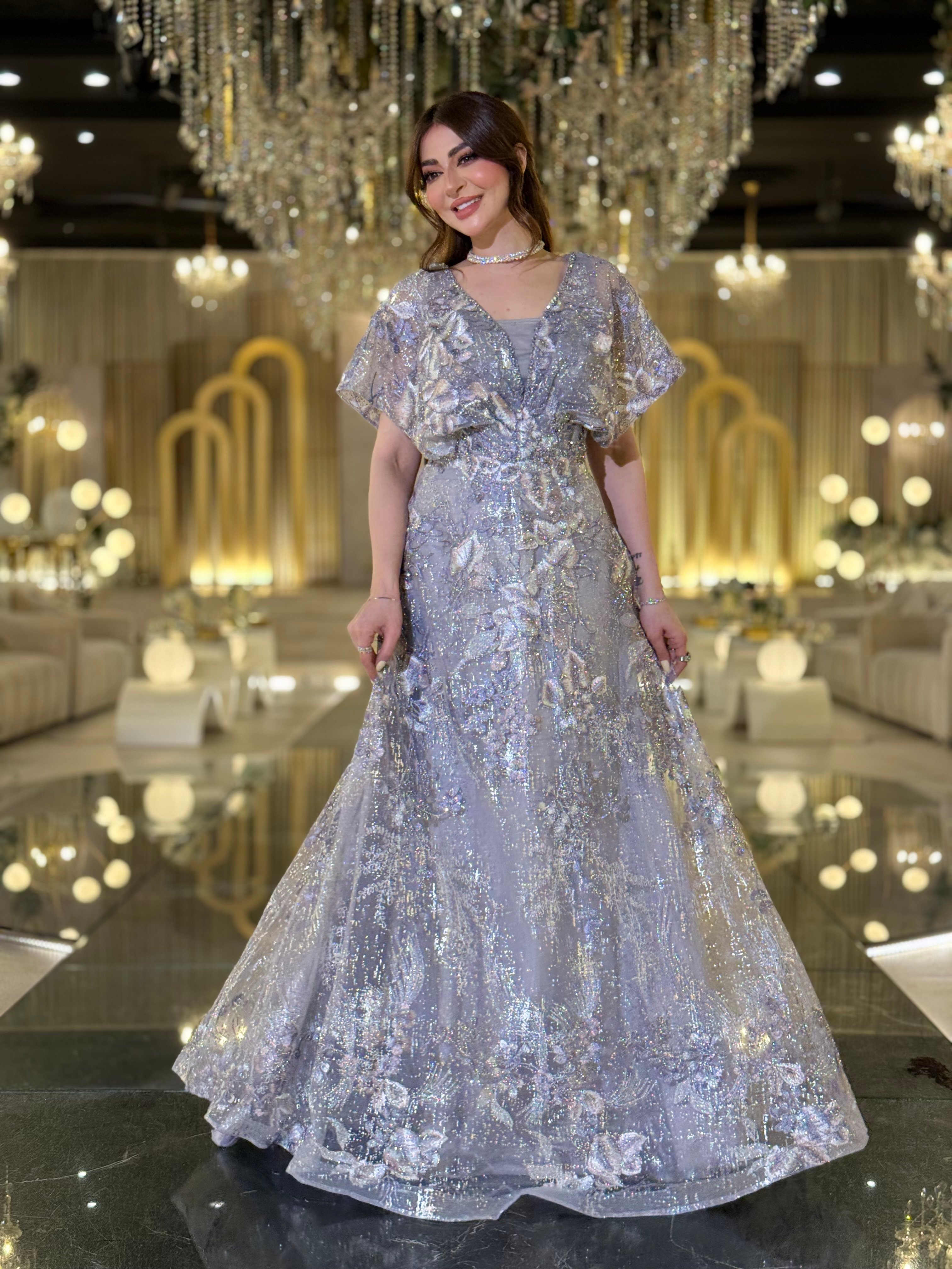 تألقي ببريق لا يُقاوم مع فستان “ضيّ القمر” من توقيع C.Y، المصمم بلمسات فاخرة تجمع بين الرقي والأنوثة. يتميز بتطريز ثلاثي الأبعاد يزين قماش التول الفضي المتلألئ، بتفاصيل زهرية أنيقة تنساب برقة على كامل الفستان. تصميم الكاب القصير يضيف لمسة ملكية ناعمة، ويجعل منه الخيار المثالي لسهرات الرفاهية والمناسبات الراقية.