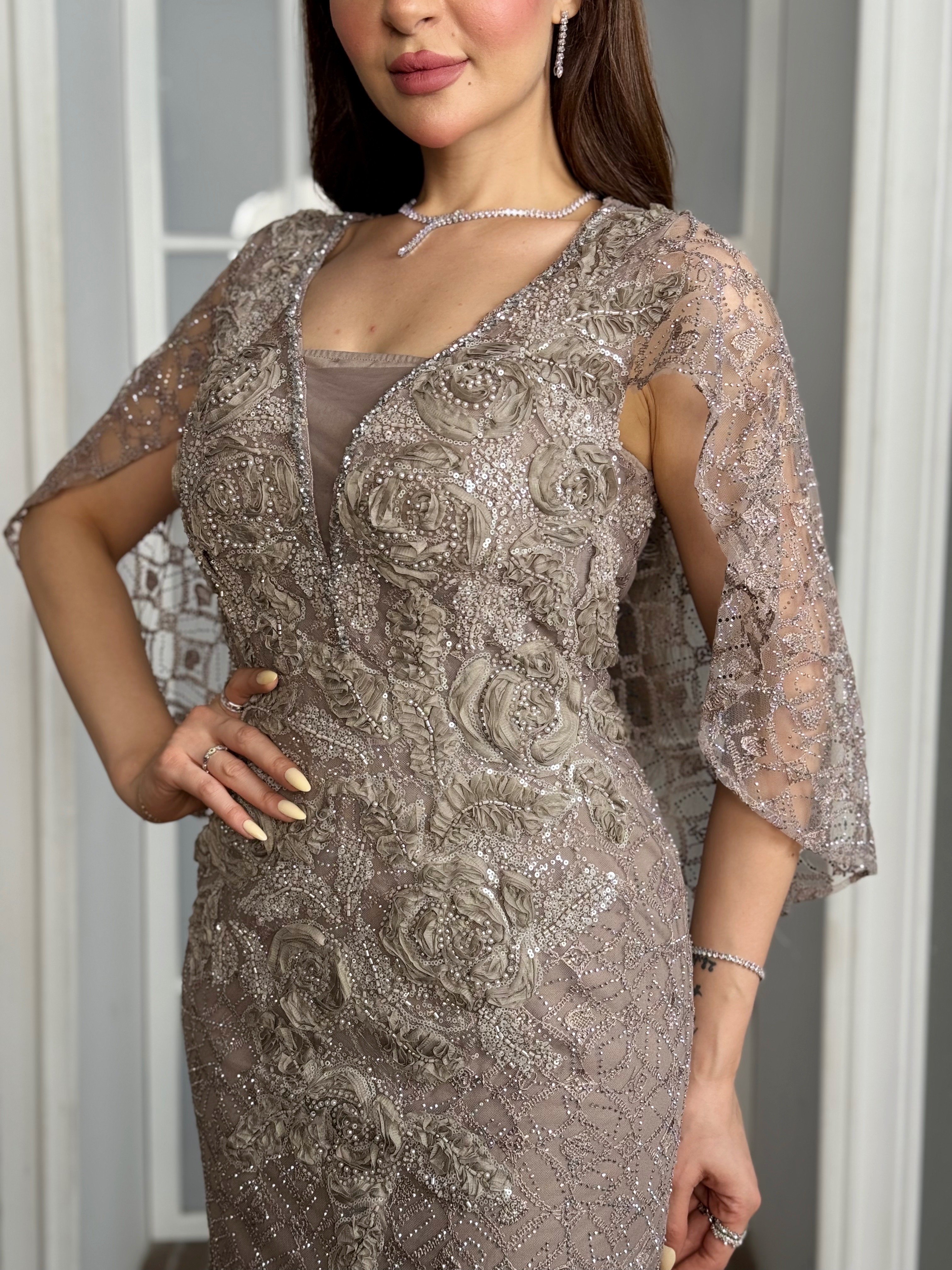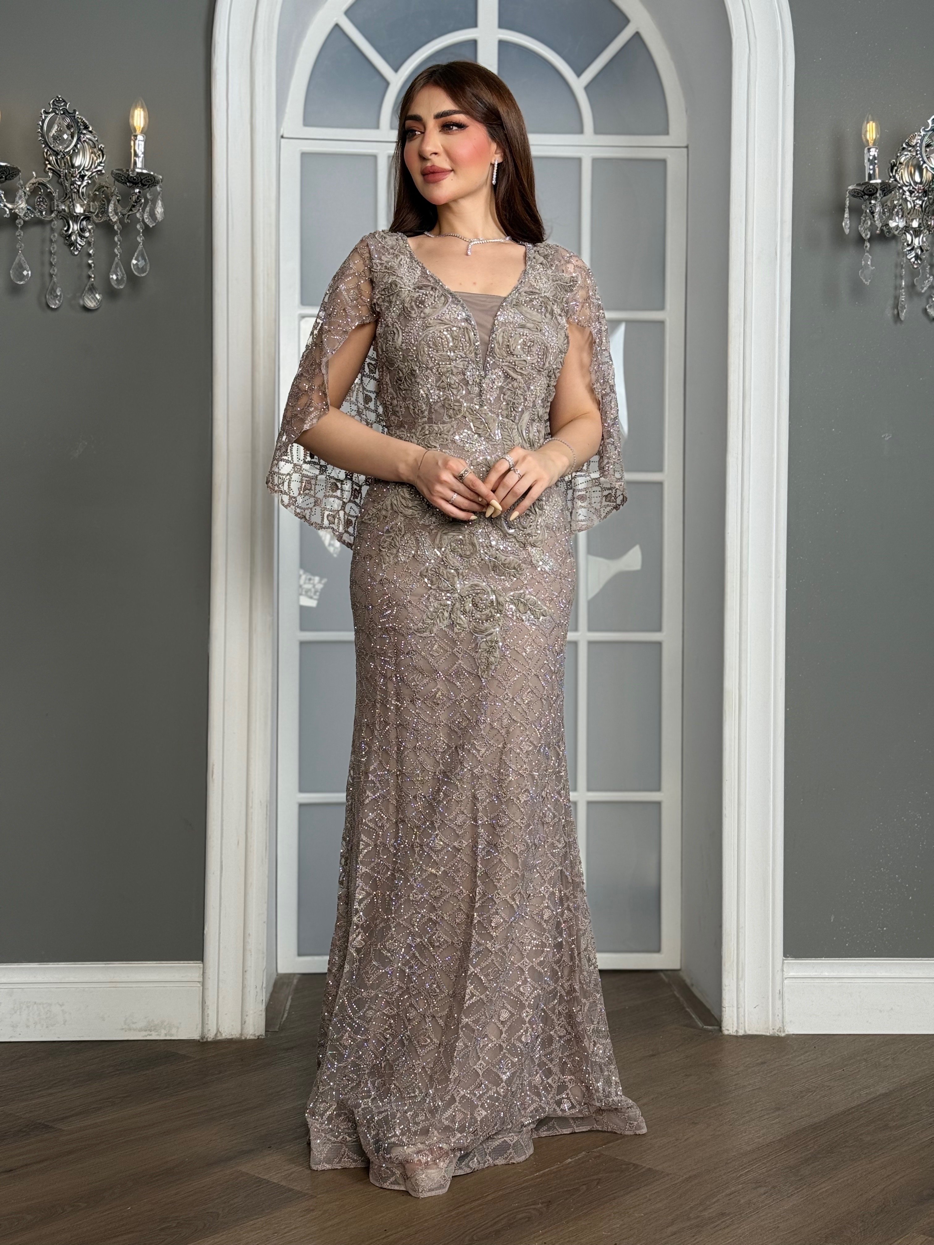 تألقي بفستان “لمسة الماس” المصمم بقصة أنيقة وتطريز فاخر يضفي لمعة جذابة، مع أكمام شفافة تمنحك حضورًا ملكيًا في كل مناسبة.