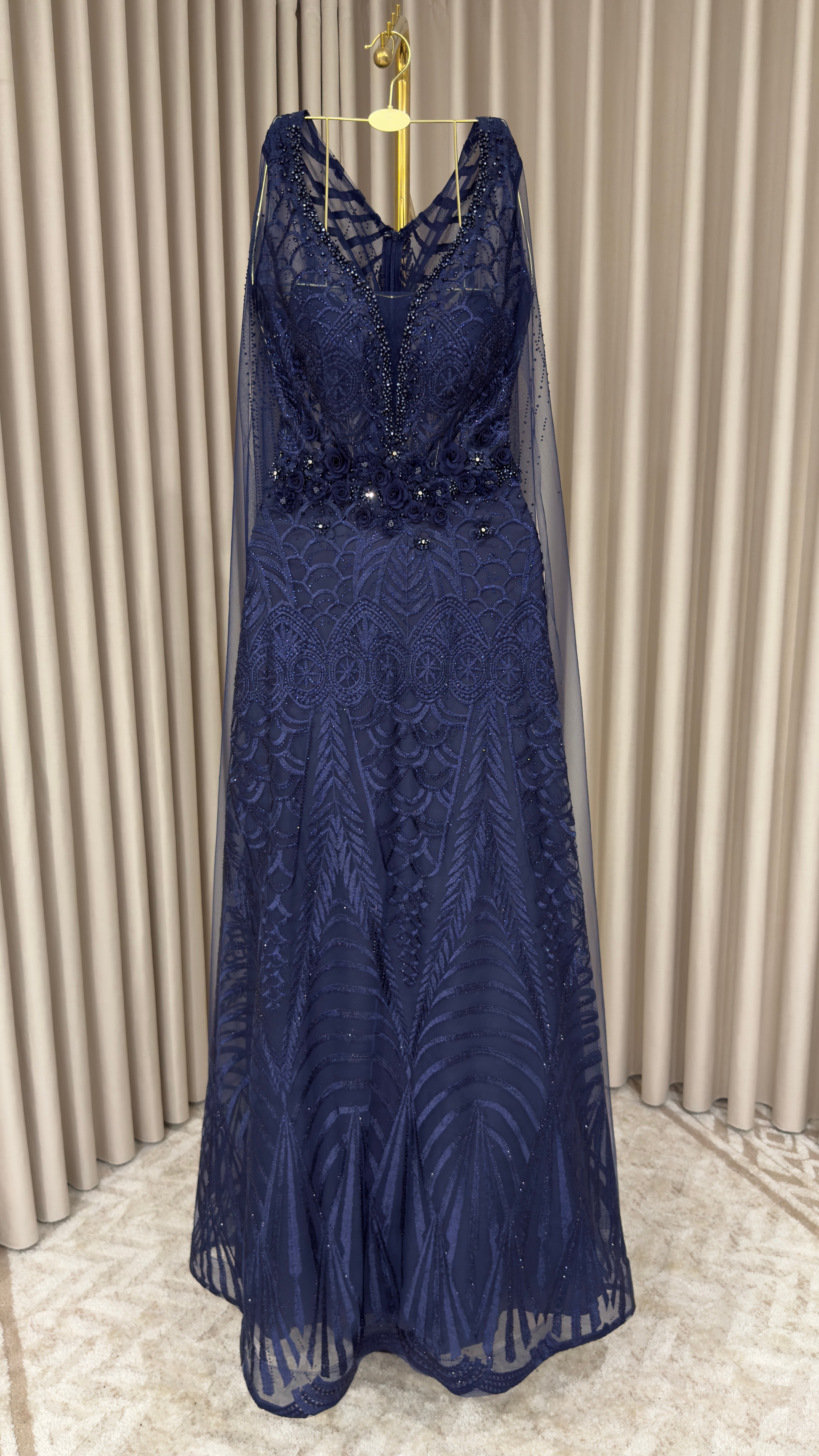 فستان ريتاج فاخر يتألق بتفاصيل دقيقة وزخارف لامعة تمنحه حضوراً أخّاذاً.